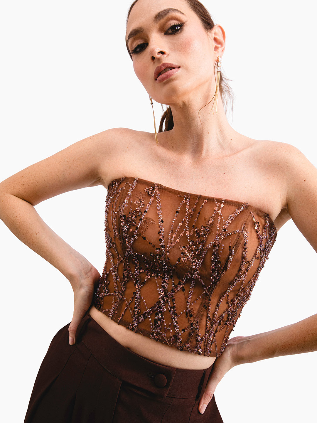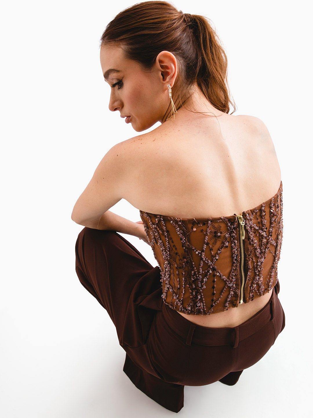 Pantalón largo en tono chocolate, diseñado con una estructura fluida y cómoda que aporta movimiento y elegancia. Cuenta con prenses delanteros que estilizan la silueta y bolsillos laterales funcionales, combinando confort y sofisticación.