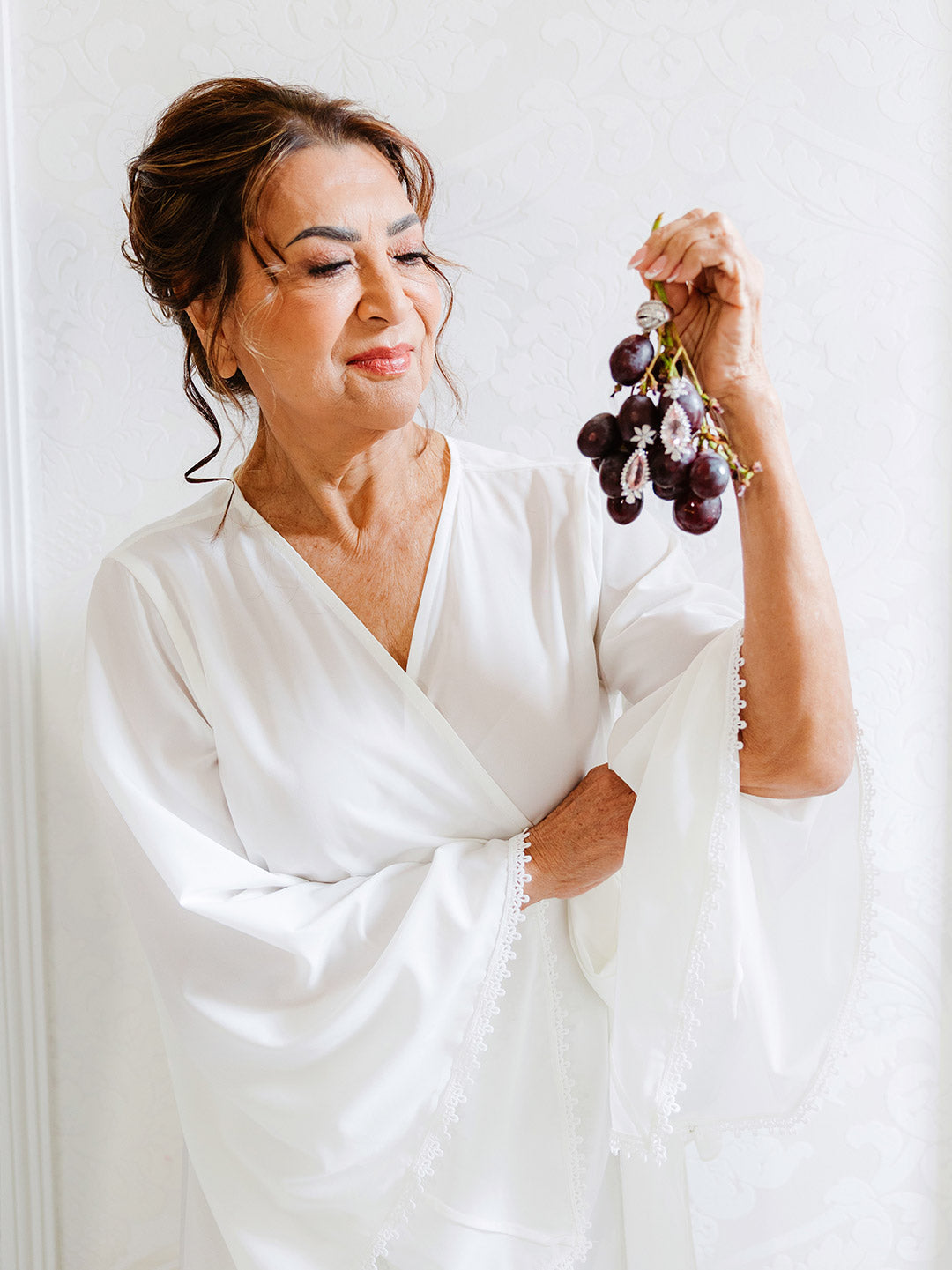 Kimono largo en tejido satinado color Ivory. Diseñado con escote en V y mangas amplias, ajustado con un cinturón largo que se amarra en la cintura.